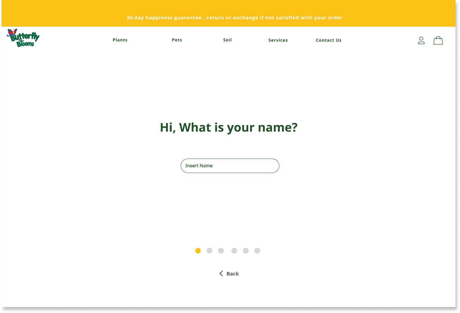 With over 30 years of experience, Butterfly Blooms is a local plant nursery with a strong physical presence but without any e-commerce offering. As part of an intensive design course, our team was tasked to give a visual refresh of Butterfly Blooms website. Our challenge was to find a way to translate the visual cues and support typically received in-person onto an e-commerce platform.